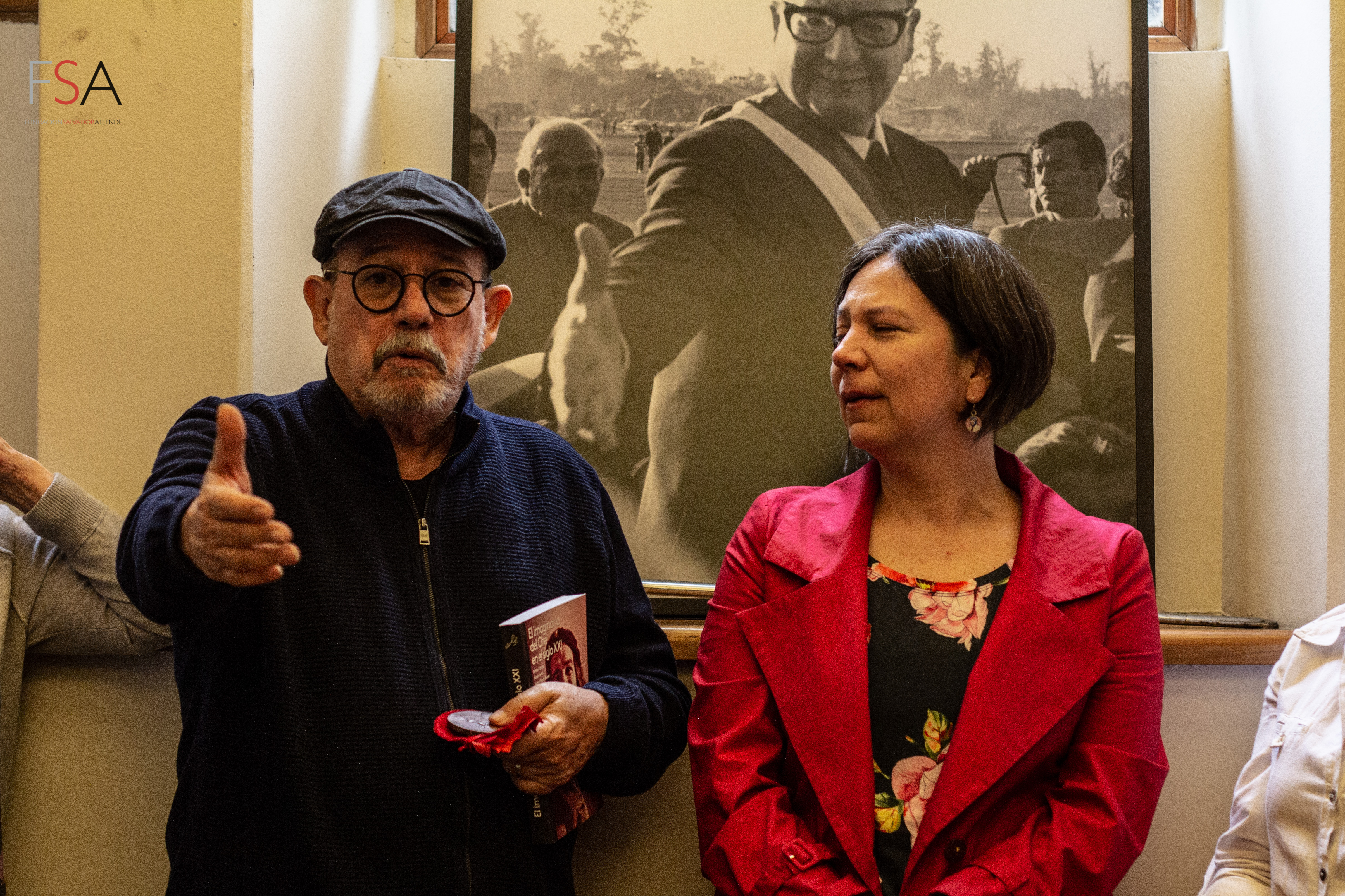 “Es una verdadera honra para mí, muchas gracias. Tuve la oportunidad de estar con él en tres ocasiones. La primera vez fue con Pablo Milanés y Noel Nicola cuando éramos parte de una delegación. Recuerdo que Allende tuvo la gentileza de reunirse con todos en una sala de La Moneda”, recordó, y luego realizó una donación de libros de su casa editorial “Ojalá”.