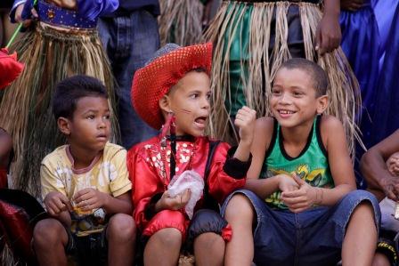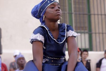 Los integrantes del grupo infantil Retoño, en saludo a la presentación de Silvio y sus invitados en la localidad, bailan Oshún, Yemayá, Changó, Obbatalá… Lo intenso del baile, la fuerza en las miradas, revela una forma de ser, algo que fluye en la gente de este lugar, que les corre en el cuerpo como la sangre, y que en los niños es más visible tal vez, seguramente más sincero.