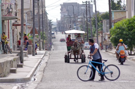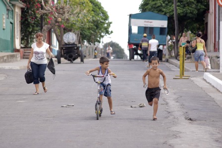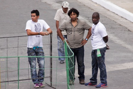 Entre una fábrica de ron y un taller ferroviario se montó el escenario; como siempre, con la bandera cubana en el fondo, inmensa esta vez.