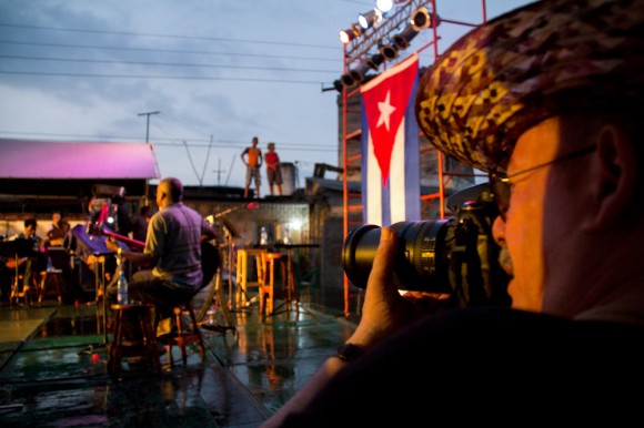 Finalmente sábado, coincidiendo con la conmemoración de la cultura cubana, un poco antes de la hora señalada en principio, a las 6:00 pm suena en Dobarganes el instrumental que abre últimamente los conciertos, para un público con sombrilla bajo el brazo.