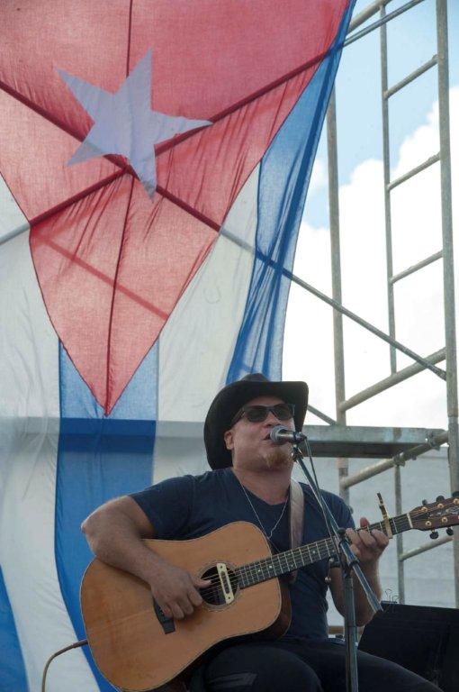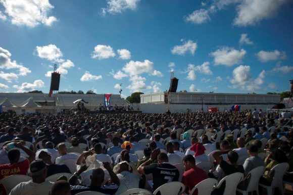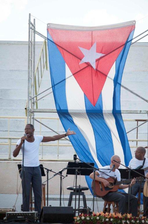 Caía la tarde, los reclusos comenzaron a retirarse. En el escenario, ondeaba la bandera cubana que preside los conciertos del fundador de la Nueva Trova.