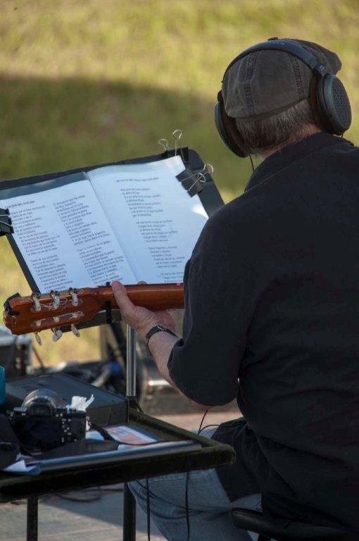 Hasta allí llegamos, en horas tempranas para en el escenario montado el día anterior, ubicar instrumentos, probar sonido, tal como sucede en “La Gira por los barrios”, iniciada por el cantautor, en el año 2010.