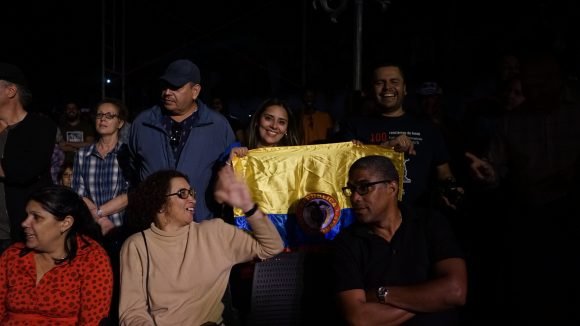 El trovador fue recibido con una gran ovación y comentó al público que se extendería un poco, porque desde hace mucho tiempo, venía diciendo, que a estos conciertos por los barrios le acompañan una tropa de invisibles imprescindibles, que son los que más trabajan, los que llegan antes y se van de últimos, a veces ha mencionado a algunos, pero en este caso, se daría el gusto de mencionarlos a todos, los que están y los que han estado. Así lo hizo.