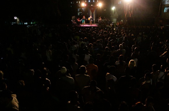 Llegaba, sí, el concierto 34. Todos lo esperaban, era seguro. Pero pareció de pronto que no, que en el horizonte se desdibujaba la posibilidad, potencial catástrofe: la planta eléctrica que se emplea en todas las presentaciones no está. Según algunos cálculos, no podrán trasladarla desde el Cotorro con tiempo suficiente para que el concierto empiece a la hora prevista: las 8 de la noche. Claro que se podría retrasar… Y es esa la resolución.