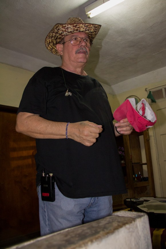 Suerte que Silvio tiene su sombrero. María Regla, vecina del barrio, no pudo hacerle un obsequio más oportuno.
