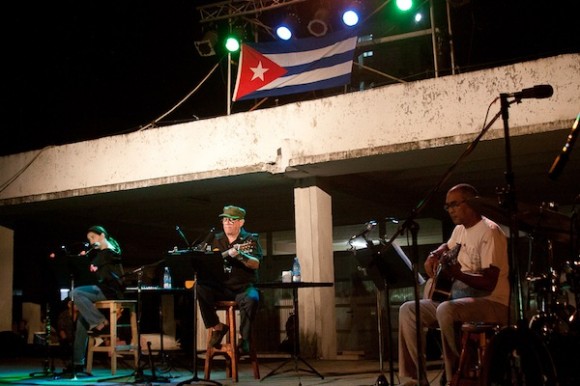“Espero que sean como ese joven que se llamó José Antonio”, añade antes de presentar y ceder micrófono a Eliades Ochoa, invitado.