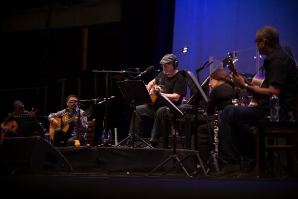 "Soy embutido de ángel y bestia. ¿De dónde creen que lo robé? De Nicanor Parra", aseguró riendo el cantautor después de cantar Óleo de mujer con sombrero.