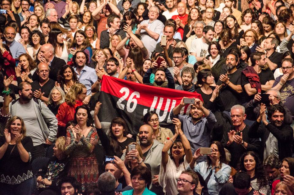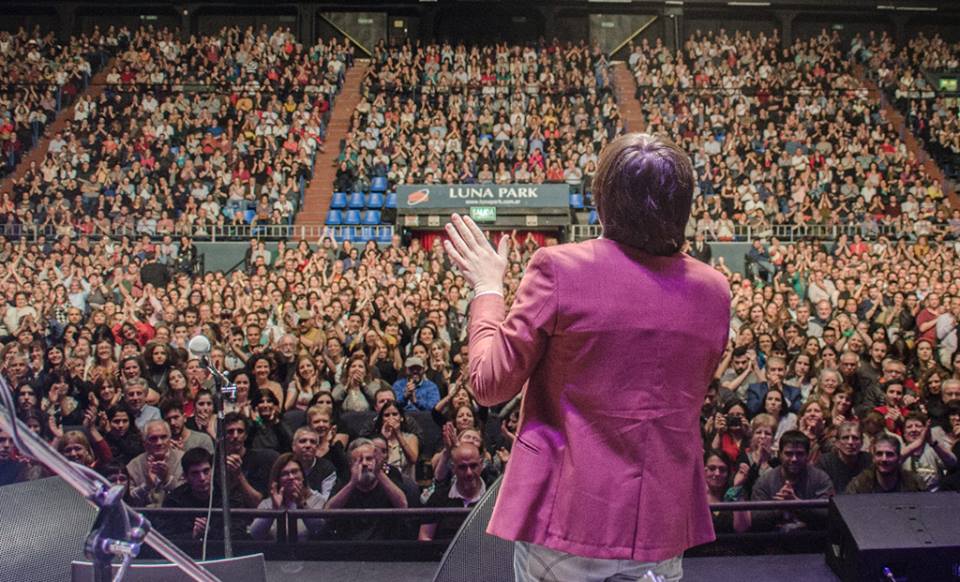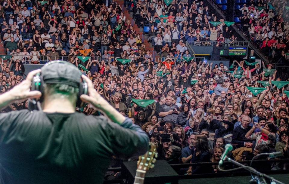 El clima fue subiendo y las lágrimas comenzaron a correr por los rostros de muchos cuando entonó Eva, dedicado a la lucha de las mujeres. Los pañuelos verdes, devenidos símbolos en este país en la batalla por el aborto legal, seguro y gratuito, se multiplicaron en el auditorio que gritaba: aborto en hospital.